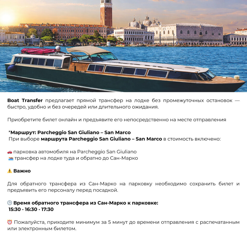 «Удобный и организованный сервис. Я забронировал трансфер от Tronchetto до San Marco всего в пару кликов. Рекомендую тем, кто хочет избежать путаницы и просто насладиться поездкой.»